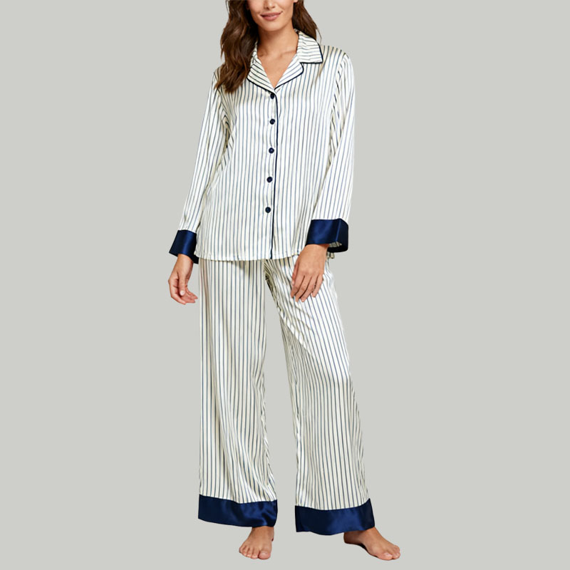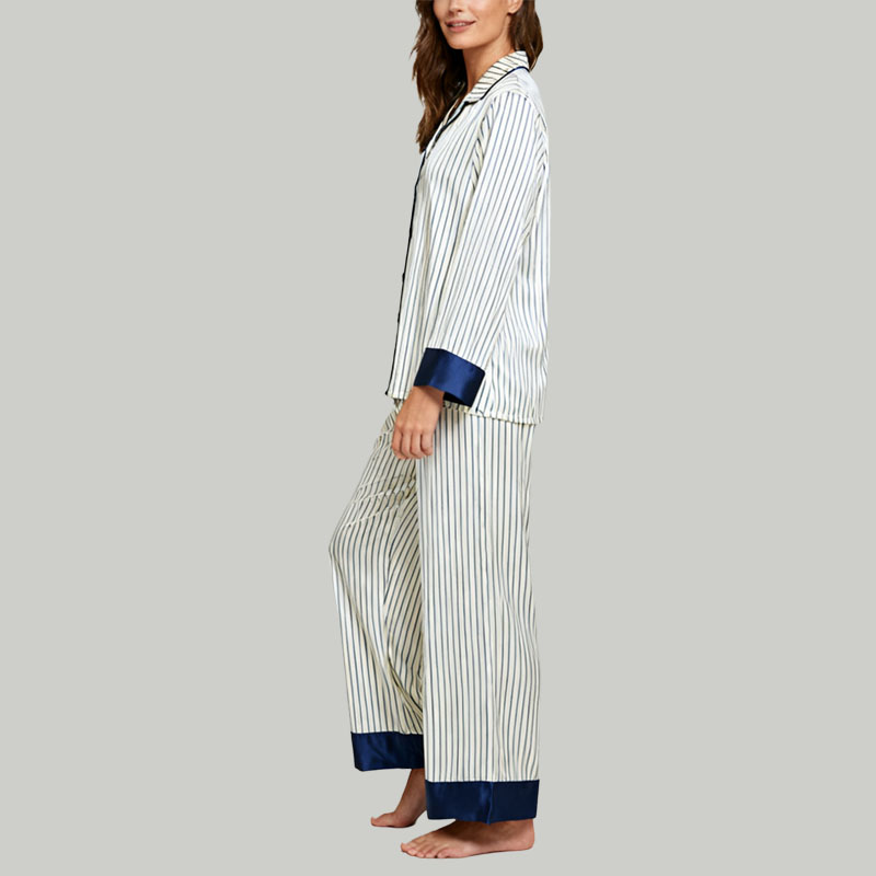Navy & White Striped Pajama Set Classic Collared Button Down Sleepwear