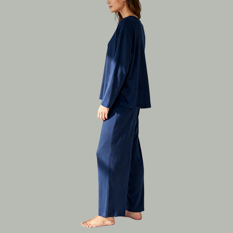 Navy Blue Relaxed Fit Pajama Set Soft Dropped Shoulder Lounge Wear