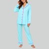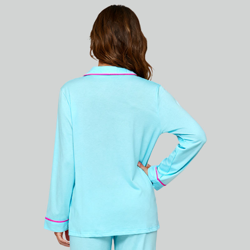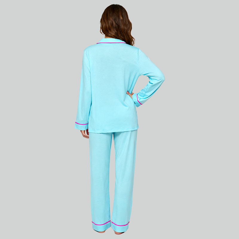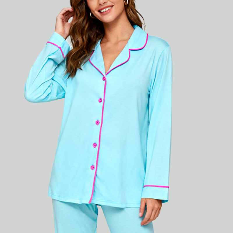 Light Blue & Pink Edge Pajama Set Soft Lounge Wear