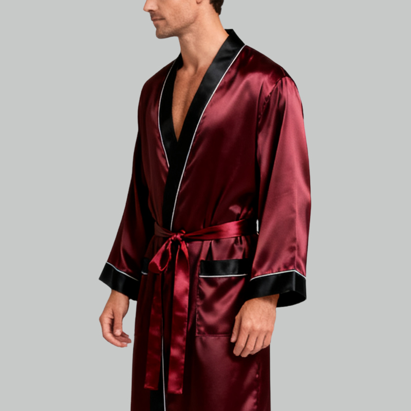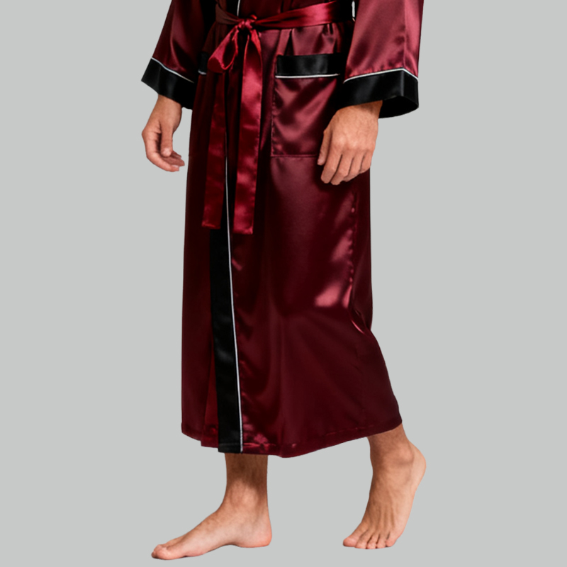Soft Elegant Men’s Silk Dressing Gown Lightweight Breathable