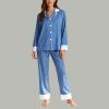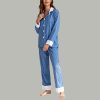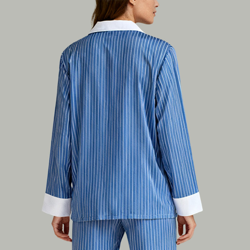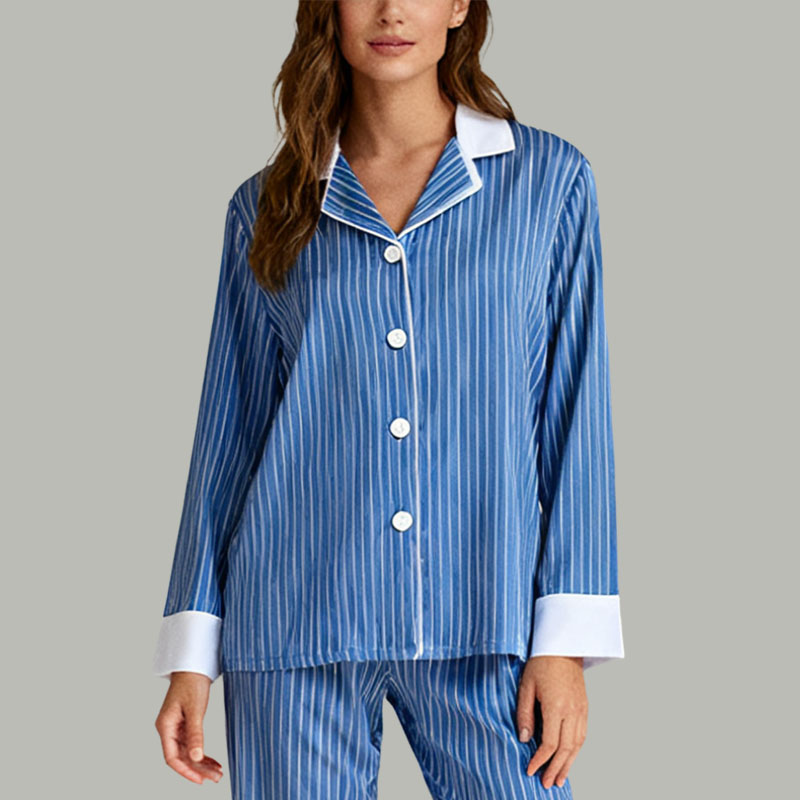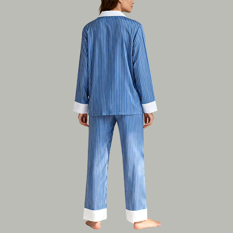 Women’s Blue & White Striped Pajama Set Classic Comfort Sleepwear